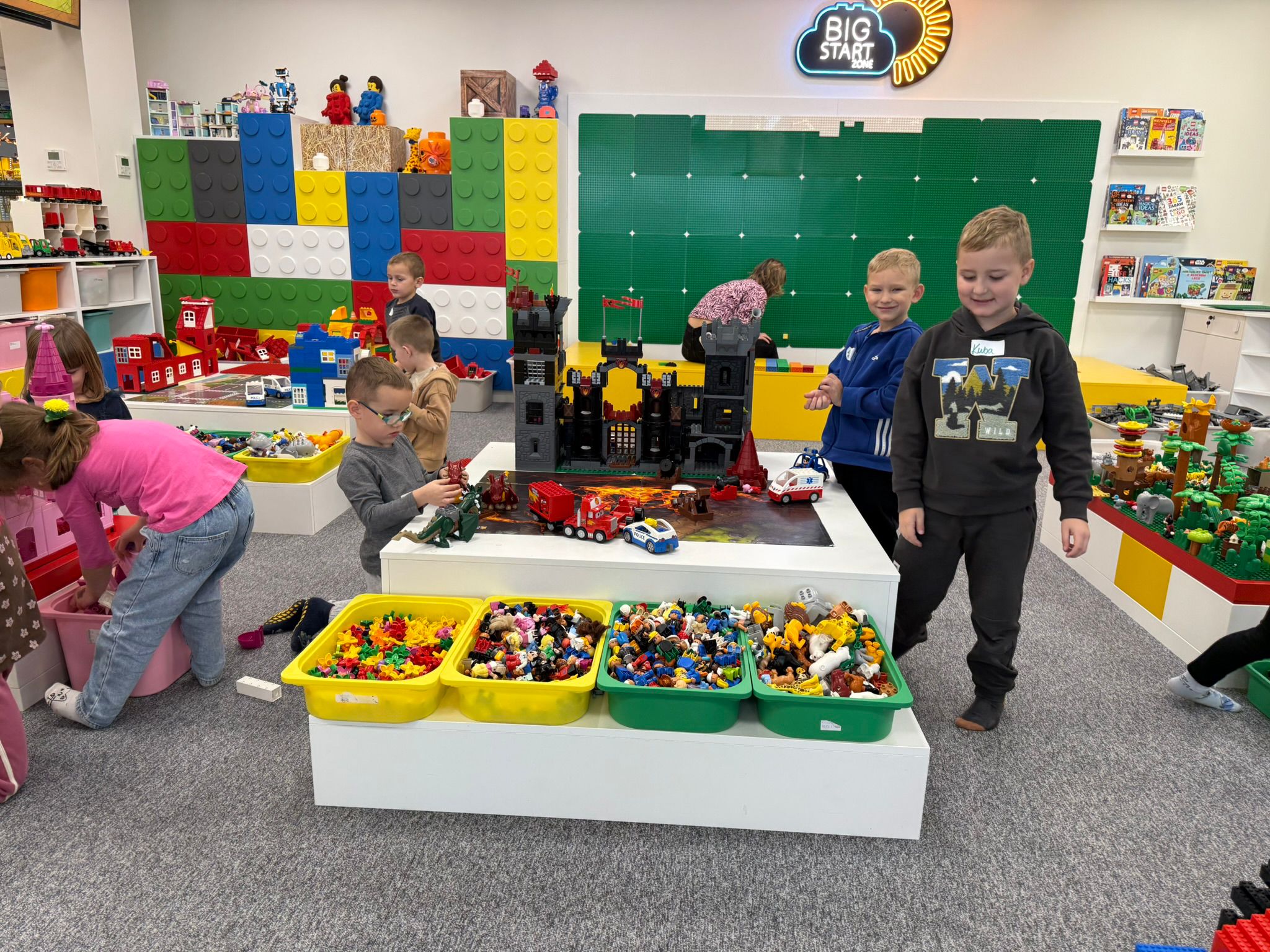 Po części zorganizowanej dzieci mogły samodzielnie korzystać z dostępnych stref zabaw, tworząc własne budowle, eksperymentując z różnymi typami klocków i rozwijając kreatywność.